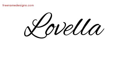 This free name graphic with cursive lettering is printed with the custom name Lovella.