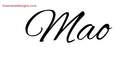 This free name graphic with cursive lettering is printed with the custom name Mao.