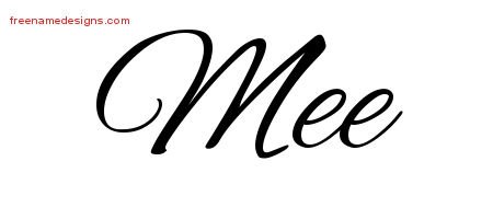 This free name graphic with cursive lettering is printed with the custom name Mee.