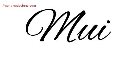 This free name graphic with cursive lettering is printed with the custom name Mui.