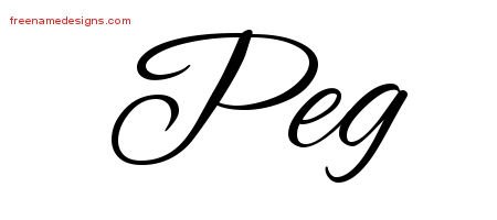 This free name graphic with cursive lettering is printed with the custom name Peg.