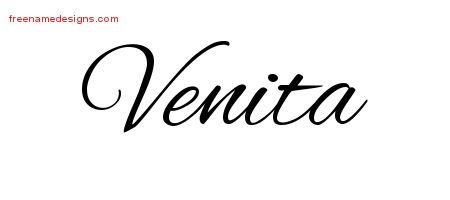 This free name graphic with cursive lettering is printed with the custom name Venita.