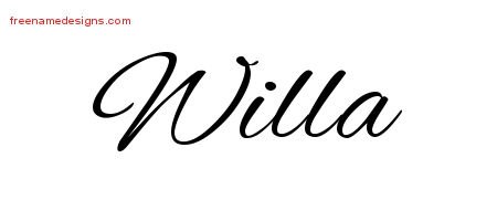 This free name graphic with cursive lettering is printed with the custom name Willa.