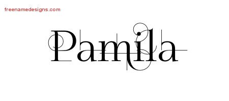 This free name graphic with decorated lettering is printed with the custom name Pamila.