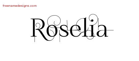 This free name graphic with decorated lettering is printed with the custom name Roselia.