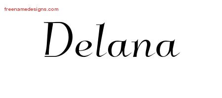 This free name graphic with elegant lettering is printed with the custom name Delana.