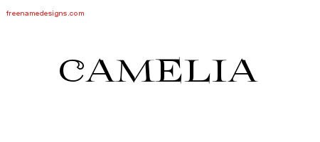 This free name graphic with flourishes lettering is printed with the custom name Camelia.