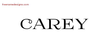 This free name graphic with flourishes lettering is printed with the custom name Carey.