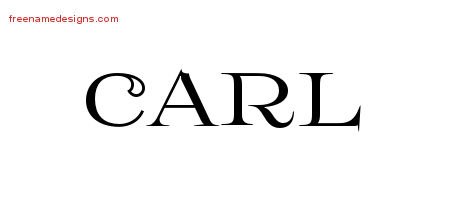 This free name graphic with flourishes lettering is printed with the custom name Carl.