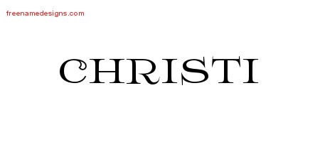 This free name graphic with flourishes lettering is printed with the custom name Christi.