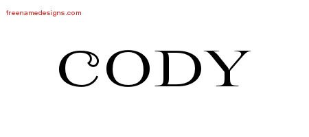 This free name graphic with flourishes lettering is printed with the custom name Cody.
