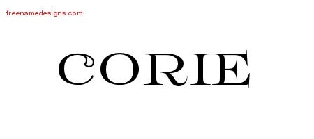 This free name graphic with flourishes lettering is printed with the custom name Corie.