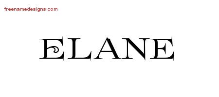 This free name graphic with flourishes lettering is printed with the custom name Elane.