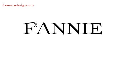 This free name graphic with flourishes lettering is printed with the custom name Fannie.