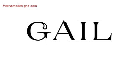 This free name graphic with flourishes lettering is printed with the custom name Gail.