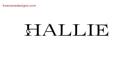 This free name graphic with flourishes lettering is printed with the custom name Hallie.
