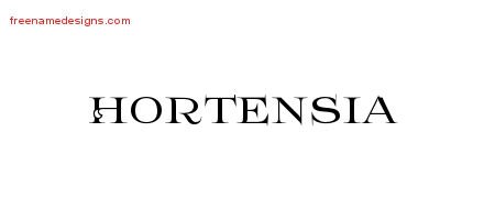 This free name graphic with flourishes lettering is printed with the custom name Hortensia.