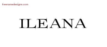 This free name graphic with flourishes lettering is printed with the custom name Ileana.