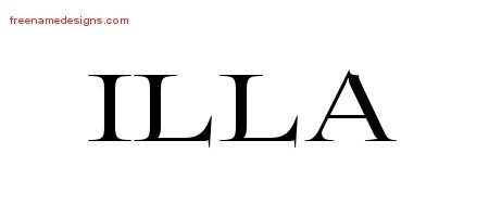 This free name graphic with flourishes lettering is printed with the custom name Illa.