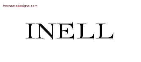 This free name graphic with flourishes lettering is printed with the custom name Inell.