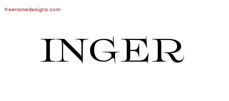 This free name graphic with flourishes lettering is printed with the custom name Inger.