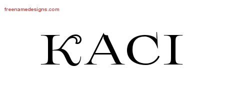 This free name graphic with flourishes lettering is printed with the custom name Kaci.