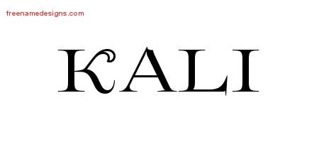 This free name graphic with flourishes lettering is printed with the custom name Kali.