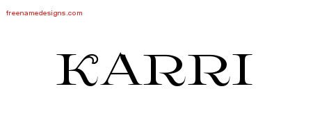 This free name graphic with flourishes lettering is printed with the custom name Karri.