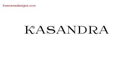 This free name graphic with flourishes lettering is printed with the custom name Kasandra.