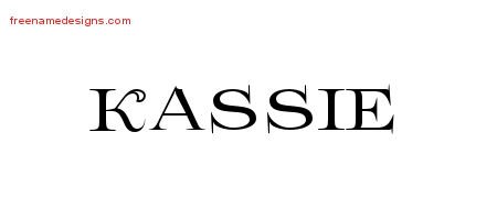 This free name graphic with flourishes lettering is printed with the custom name Kassie.