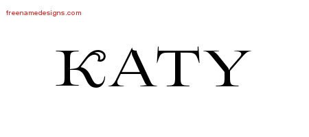 This free name graphic with flourishes lettering is printed with the custom name Katy.