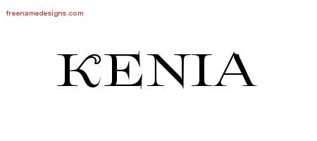 This free name graphic with flourishes lettering is printed with the custom name Kenia.