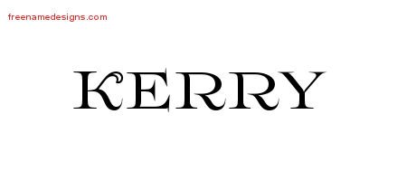 This free name graphic with flourishes lettering is printed with the custom name Kerry.
