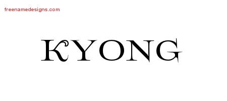 This free name graphic with flourishes lettering is printed with the custom name Kyong.