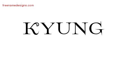 This free name graphic with flourishes lettering is printed with the custom name Kyung.