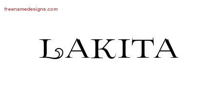 This free name graphic with flourishes lettering is printed with the custom name Lakita.