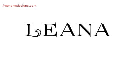 This free name graphic with flourishes lettering is printed with the custom name Leana.