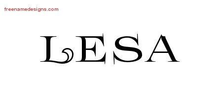 This free name graphic with flourishes lettering is printed with the custom name Lesa.