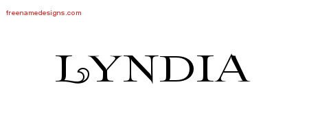 This free name graphic with flourishes lettering is printed with the custom name Lyndia.