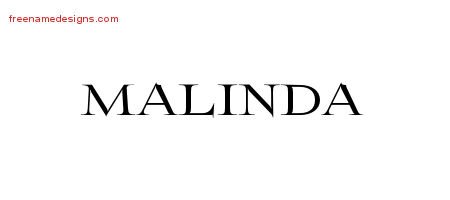 This free name graphic with flourishes lettering is printed with the custom name Malinda.