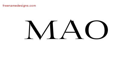 This free name graphic with flourishes lettering is printed with the custom name Mao.