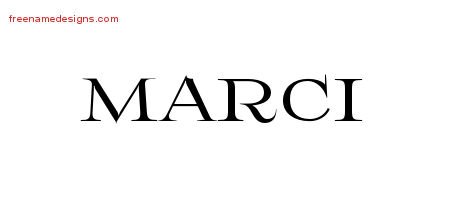 This free name graphic with flourishes lettering is printed with the custom name Marci.