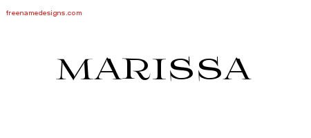 This free name graphic with flourishes lettering is printed with the custom name Marissa.
