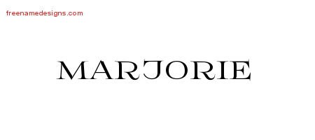 This free name graphic with flourishes lettering is printed with the custom name Marjorie.