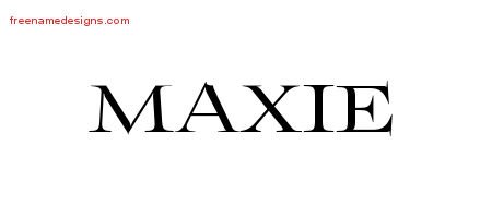 This free name graphic with flourishes lettering is printed with the custom name Maxie.