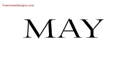 This free name graphic with flourishes lettering is printed with the custom name May.