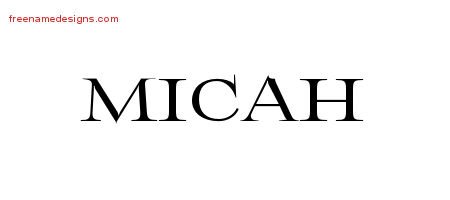 This free name graphic with flourishes lettering is printed with the custom name Micah.