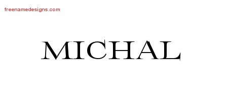 This free name graphic with flourishes lettering is printed with the custom name Michal.