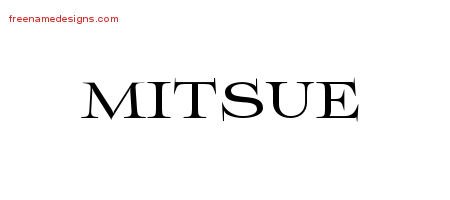 This free name graphic with flourishes lettering is printed with the custom name Mitsue.