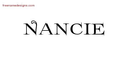 This free name graphic with flourishes lettering is printed with the custom name Nancie.